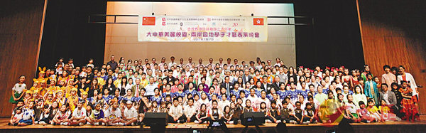 香港宋庆龄金钥匙培训基金会、湾仔区议会属下文化及康乐事务委员会,日前于中环大会堂联合举办庆祝香港回归祖国20周年“大中华美丽校园、两岸四地学子才艺表演晚会”。中联办港岛工作部副部长陈旭斌、湾仔区议会主席吴锦津等莅临主礼,香港宋庆龄金钥匙培训基金会主席何淑云、会长李芝明等陪同。当晚两岸暨港澳地区约300少年学子共聚香港同台献艺,吸引近千亲友前来观赏,座无虚席,场面热闹,气氛喜庆。